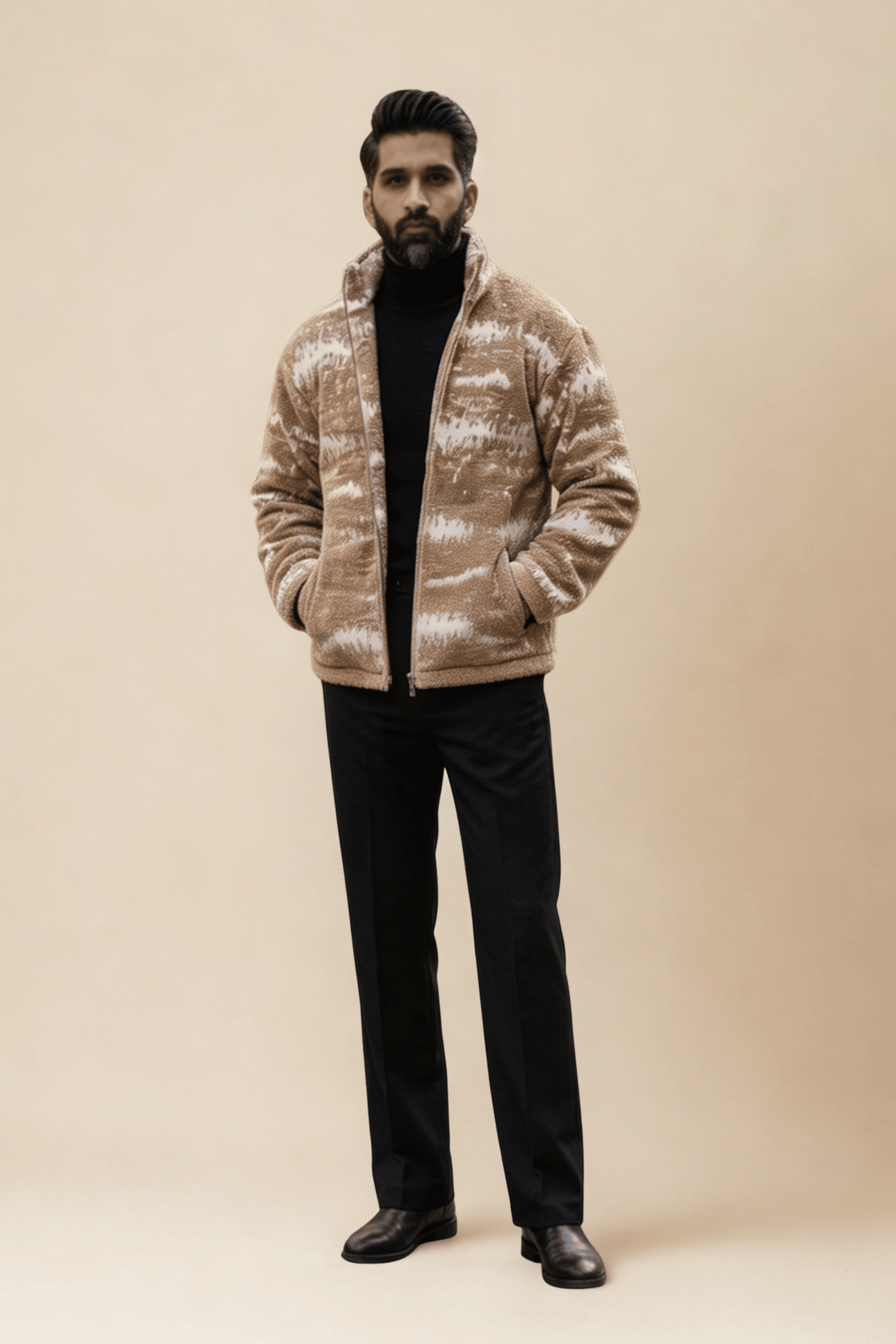 The silhouette is intentionally loose and slightly oversized, allowing it to sit comfortably across seasons and styles. Thoughtful details like a clean zip front, functional pockets, and a soft standing collar make it an instinctive choice.